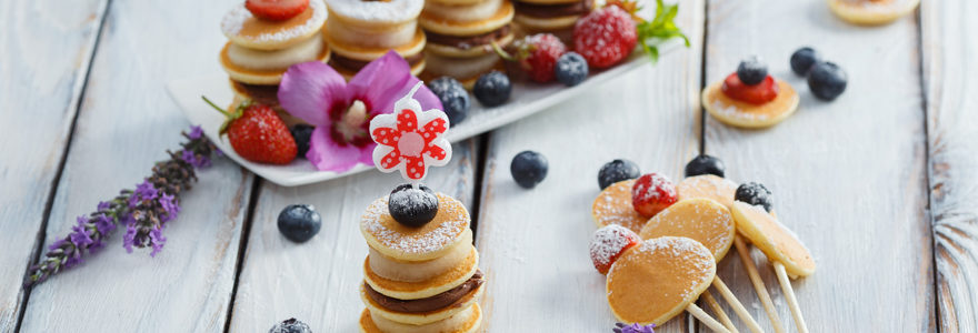 Il suffit de réaliser une bonne pâte à crêpes, de laisser la pate à tartiner, le sucre et le sirop d’érable sur la table et surtout, l’appareil à mini crèpes !